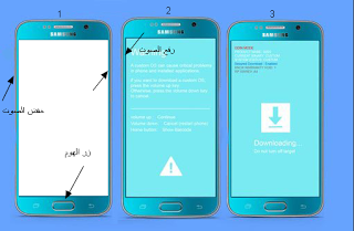 وندخل الهاتف على وضع داونلود عبر ضغط على زر الهوم + رفع صوت +البور