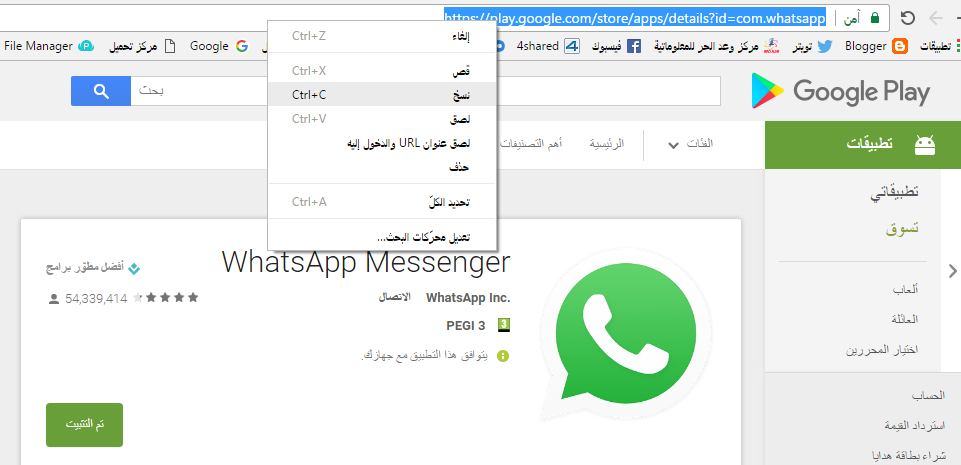 ونختار التطبيق او اللعبه ونضغط عليها ثم نقوم بنسخ الرابط