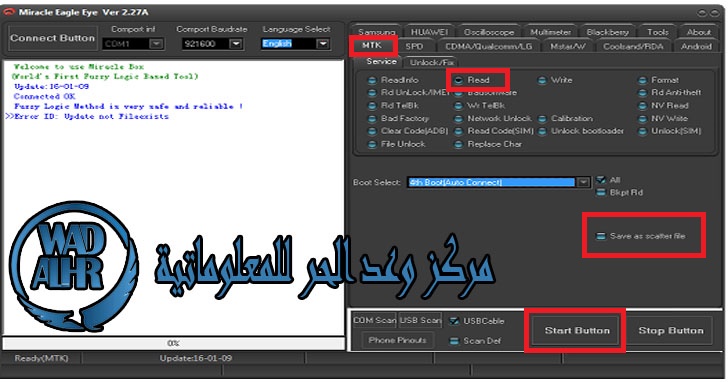 بالضغط على خيار Read وهذ يعني قرائة الروم واخذ نسخة منها وبعد ذالك  نقوم بالتعليم على مربع خيار save scatter file