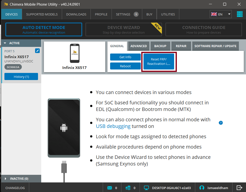 Reset FRP INFINX SMART 7 PIUS (X6517) Via Chimera