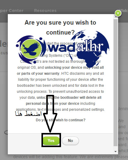 سيظهر لك الان في الهاتف خيارين يجب ان تختار yes