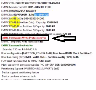 حل مشاكل اصلاح ام ام سي EMMC Permanet Write Protection: Yes